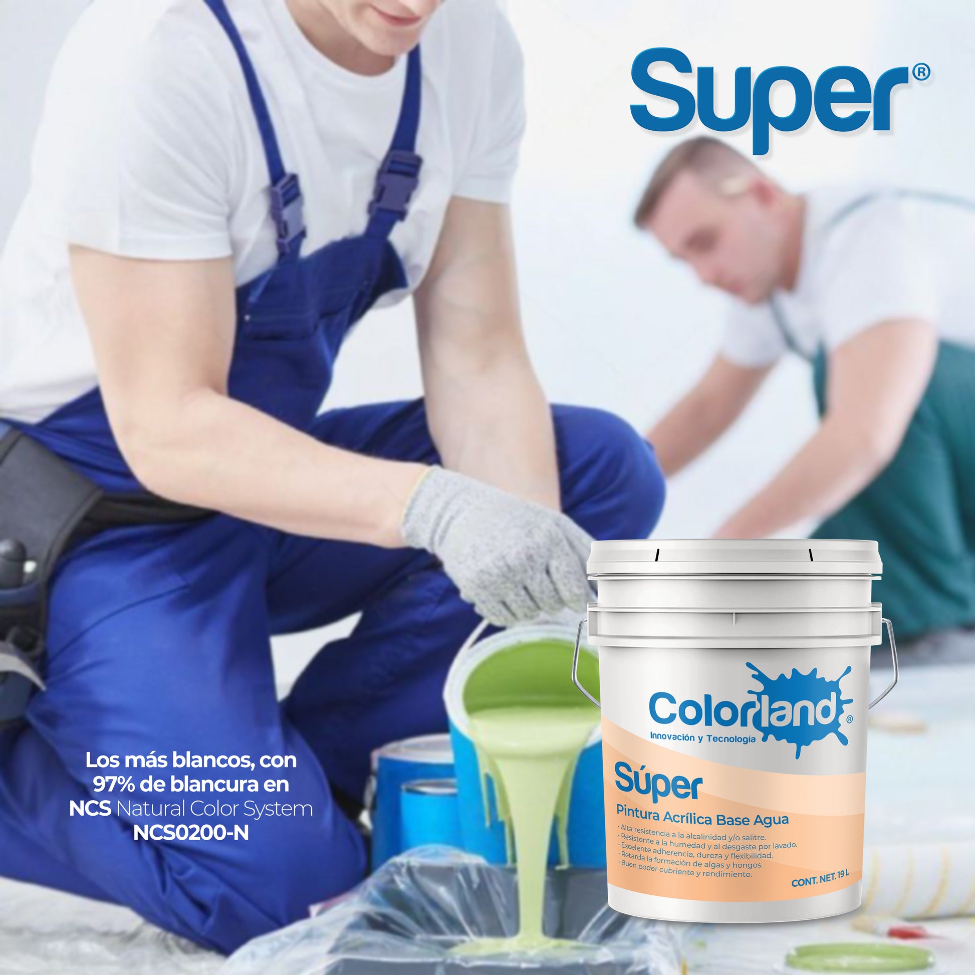 Super ColorLand® es una pintura arquitectónica acrílica base agua de alto rendimiento, desarrollada con polímeros de última generación y pigmentos resistentes, libre de metales pesados y amigable con el medio ambiente.