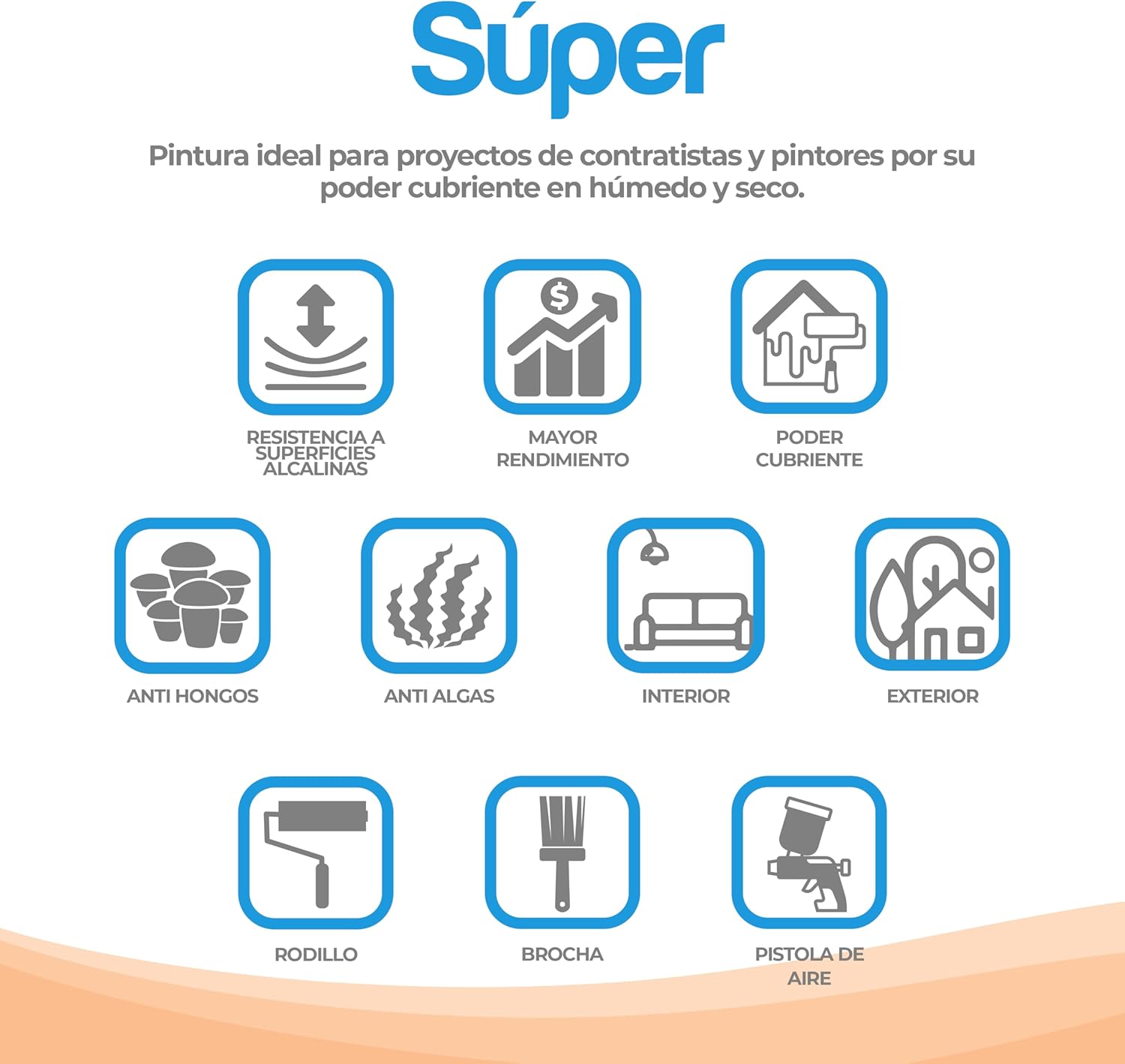 Diseñada para interiores y exteriores, esta pintura mate ofrece un acabado profesional, ideal para muros, plafones, yeso, madera, block y más. Su fórmula innovadora proporciona una excelente adherencia, alto poder cubriente y resistencia a la formación de algas y hongos, incluso en climas húmedos o alcalinos.