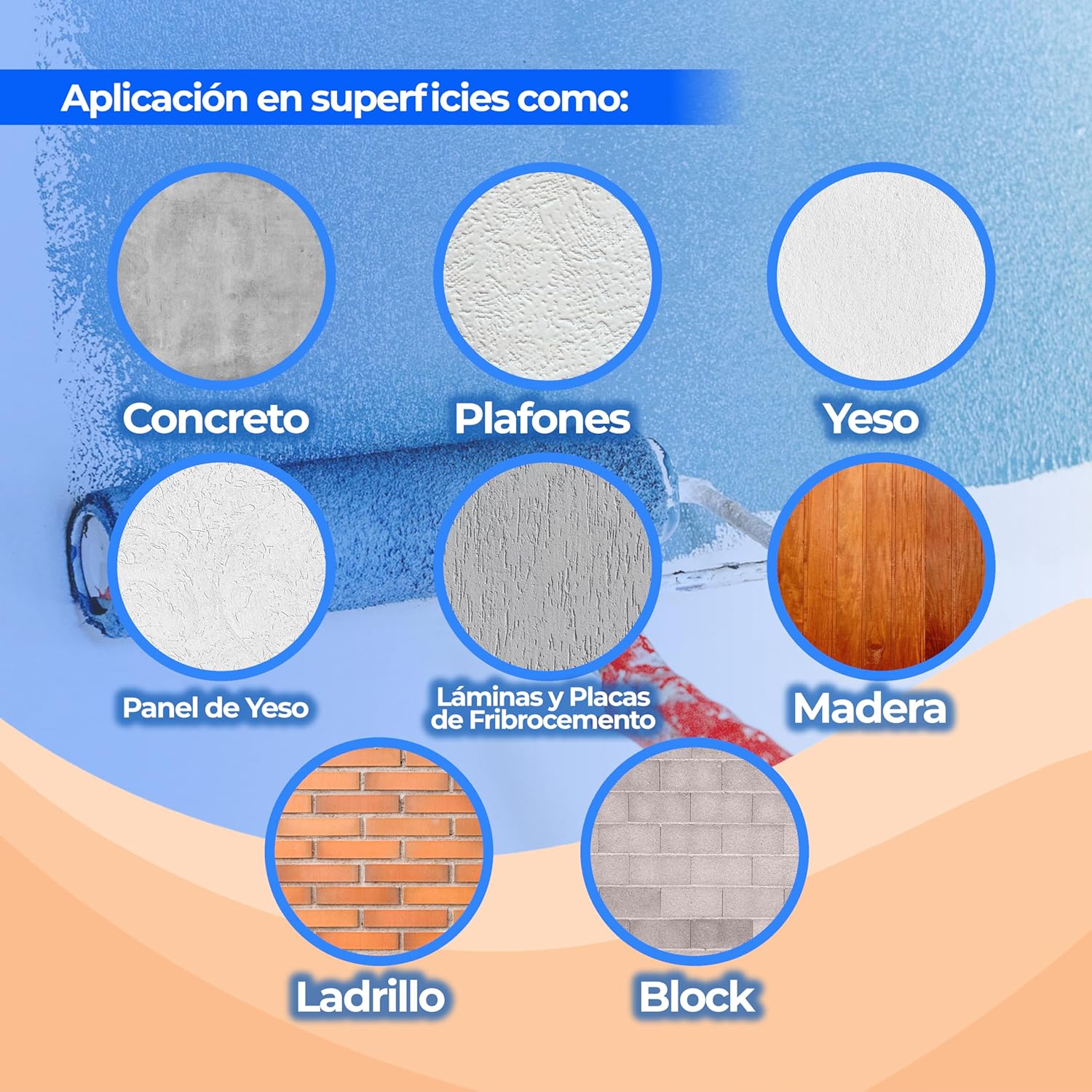Las superficies brillosas se deben lijar ligeramente con buena ventilación y equipo de seguridad adecuada. Para superficies de morteros de yeso o cemento, bloques de concreto y materiales similares a base de cemento, deberán estar fraguados y duros.