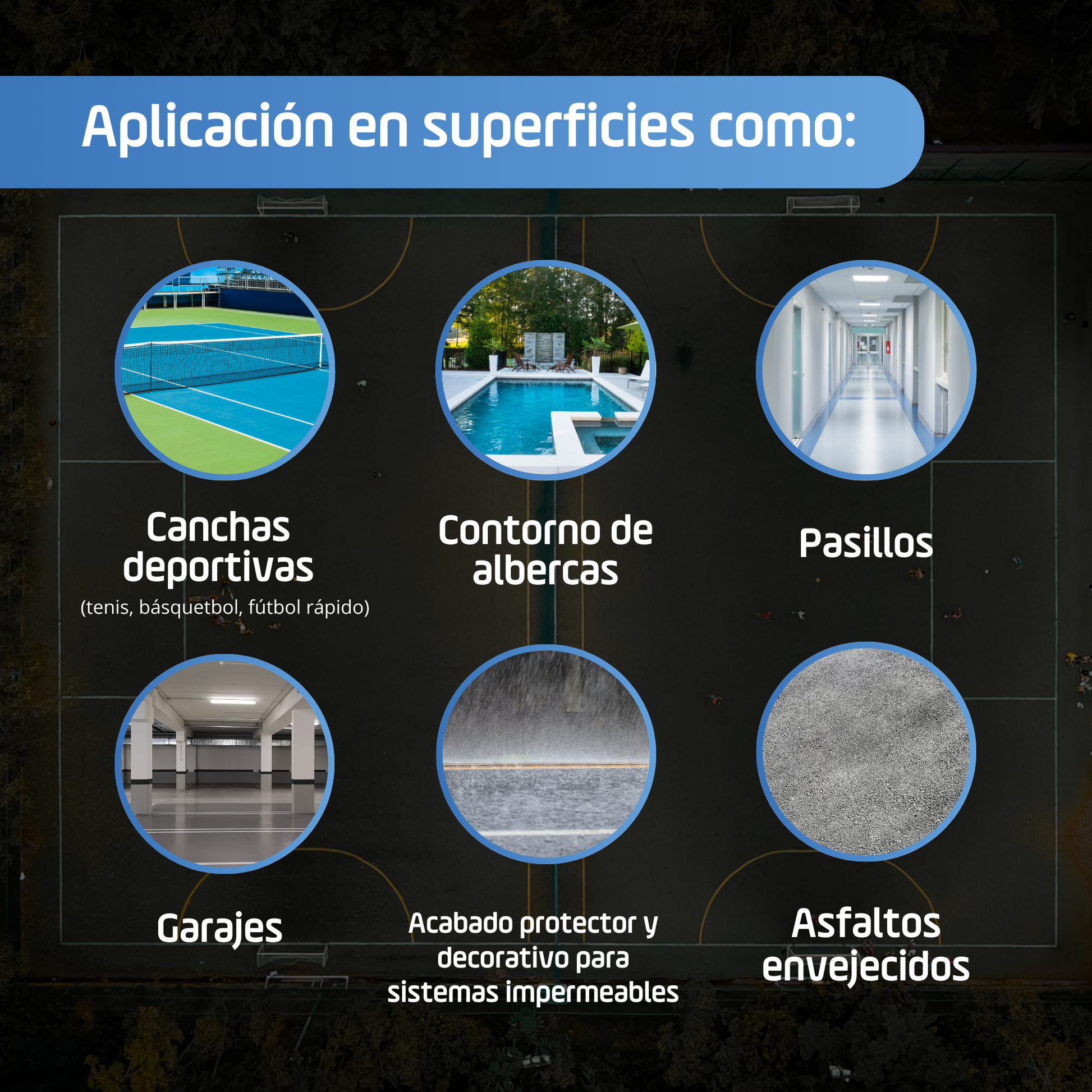 Ideal para aplicar en climas cálidos y húmedos como el de Cancún, donde se requiere un acabado deportivo profesional que soporte el uso constante y las condiciones ambientales exigentes.